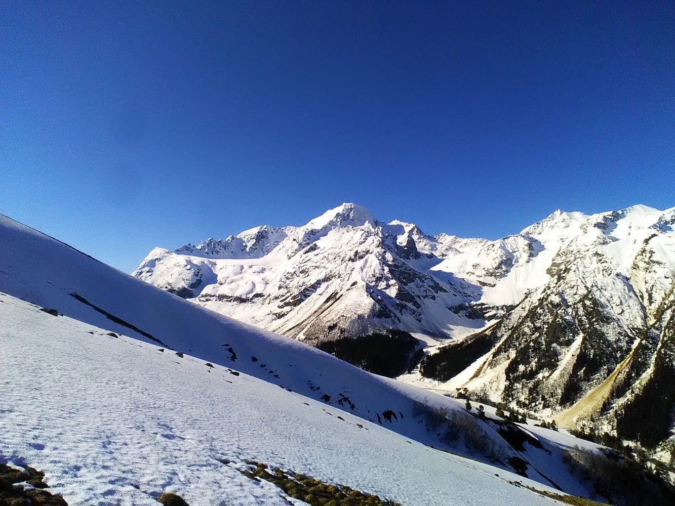 Но удача была на нашей стороне, 4 мая выпускаемся у начальника сборов и 5-го числа в 4 часа утра выход. Просыпаемся – небо чистое, легкий морозец, идеальное начало. Подошли под маршрут даже быстрее запланированного, а дальше подъем в лоб по склону. По пути на снегу видим медвежьи следы, это немного озадачивает, нужно быть по-внимательнее, чтобы не произошла неожиданная встреча с милым мохнатым зверем. Пыхтим до гребня 5 часов, затем еще минут 30 в связках по вершинной башне и вот она, первая для многих вершина – ЧЕГЕТ-ЧАТ.