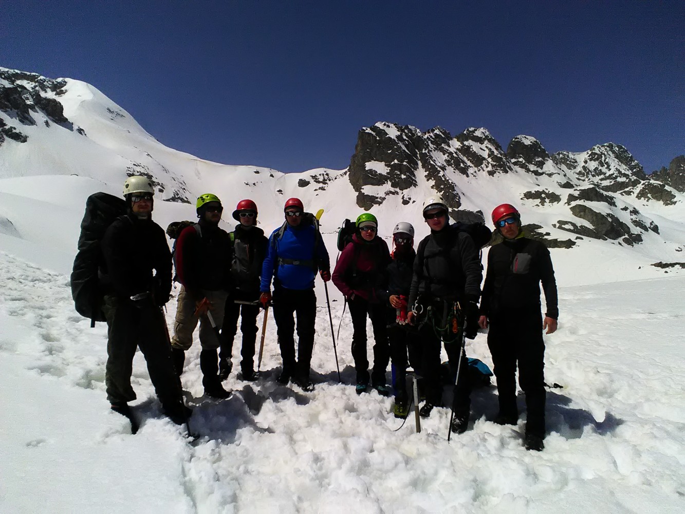 Фотосессия заняла немало времени, но оно и понятно, большое событие, ведь поднялись по маршруту 1Б, это вам не всякие там штучки мять. Дальше, естественно, был спуск, спуск по снегу, кто-то пытался глиссировать, кто-то шел на 3 такта, еще нет уверенности, опыта не хватает, но это дело наживное. В лагерь вернулись уставшими, но довольными.