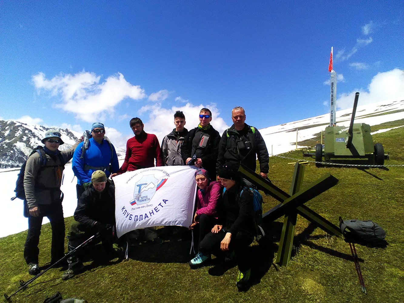 На 9 мая запланировали прогулку на п. Пхия к монументу защитникам перевала. Маршрут мы знали только примерно и его протяженность по асфальту была 12 км в одну сторону. В итоге мы пришли за этот день без малого 40 км. Но оно того стоило, виды на подъеме к перевалу были потрясающими, смола на соснах нагрелась в теплый солнечный день и аромат в лесу стоял восхитительный. Благодаря хорошей погоде удалось осмотреть огромный район Архыза, скрытый от нас ранее, из Софийского ущелья его не видно даже с вершин. Естественно сделали групповые фото у пушки.