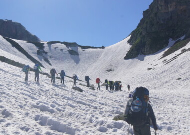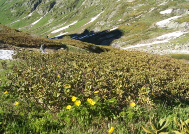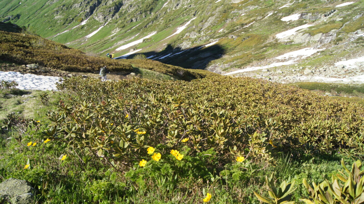 Собираем лагерь и выдвигаемся на маршрут по тропе к Энгельмановым полянам. Общий сброс высоты 500 м , а расстояние 18 км. Но это будут сложные километры, тропа идет сначала по альпийским лугам, а затем уходит в вековой лес. Подъемы чередуются со спусками.