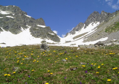 Сегодня наша задача подняться по каменной тропе на перевал Цындышко (2750 м) и спуститься к озеру Кардывач. Общая протяженность – 11 км Подъем/спуск – 1000/1000м.