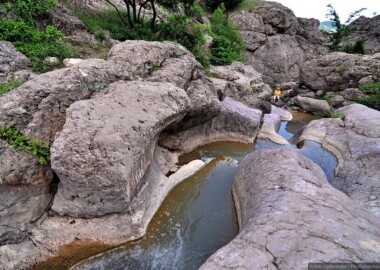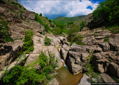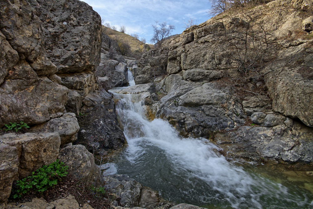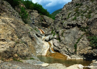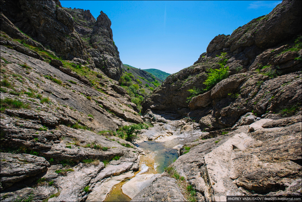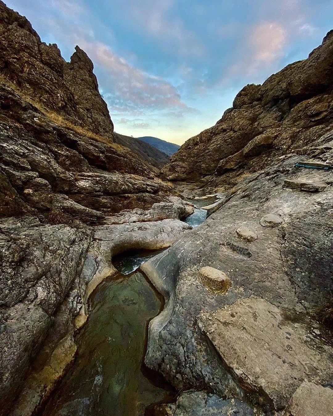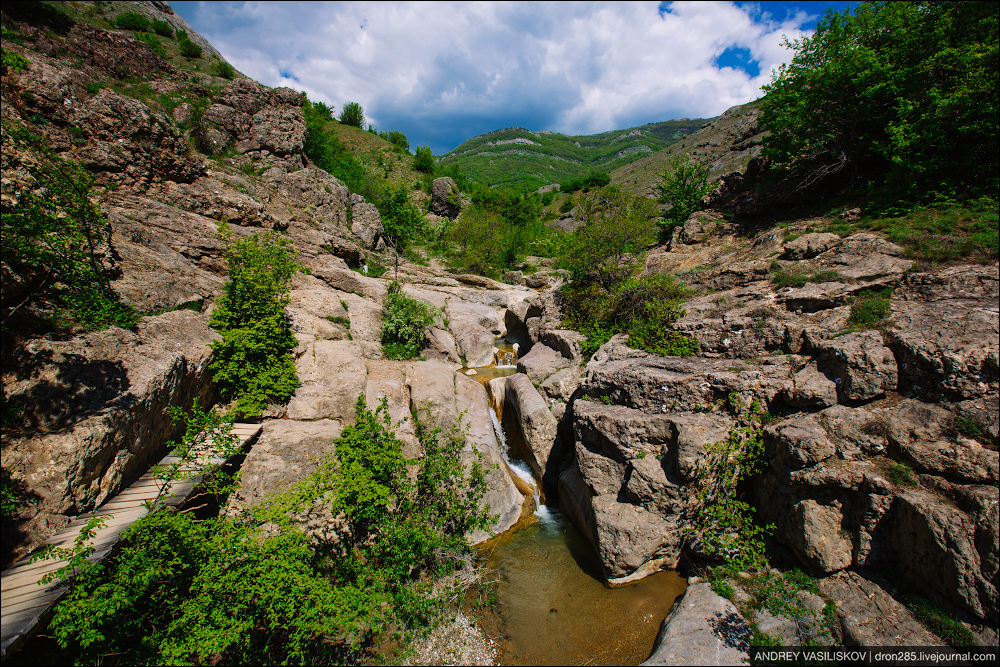 Сегодня самый насыщенный день. Мы выйдем на хребет, откуда откроется вниз вся долина. И начнем спуск. Тропа идет среди скал. Водопады,их множестве спадают ступенями, образуя уютные ванны. Наверняка в некоторых из них мы искупаемся. Нижняя часть ущелья заботливо оборудована мостиками и летницами.