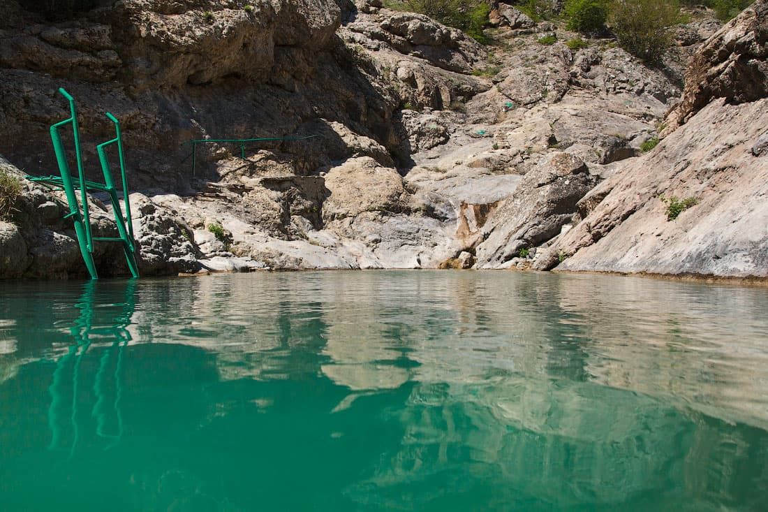 На ночевку мы спустимся в поселок Зеленогорье. Здесь есть большое живописное горное озеро. Возле него отличные места под палатки, и есть хороший родник. А в поселке магазин.
