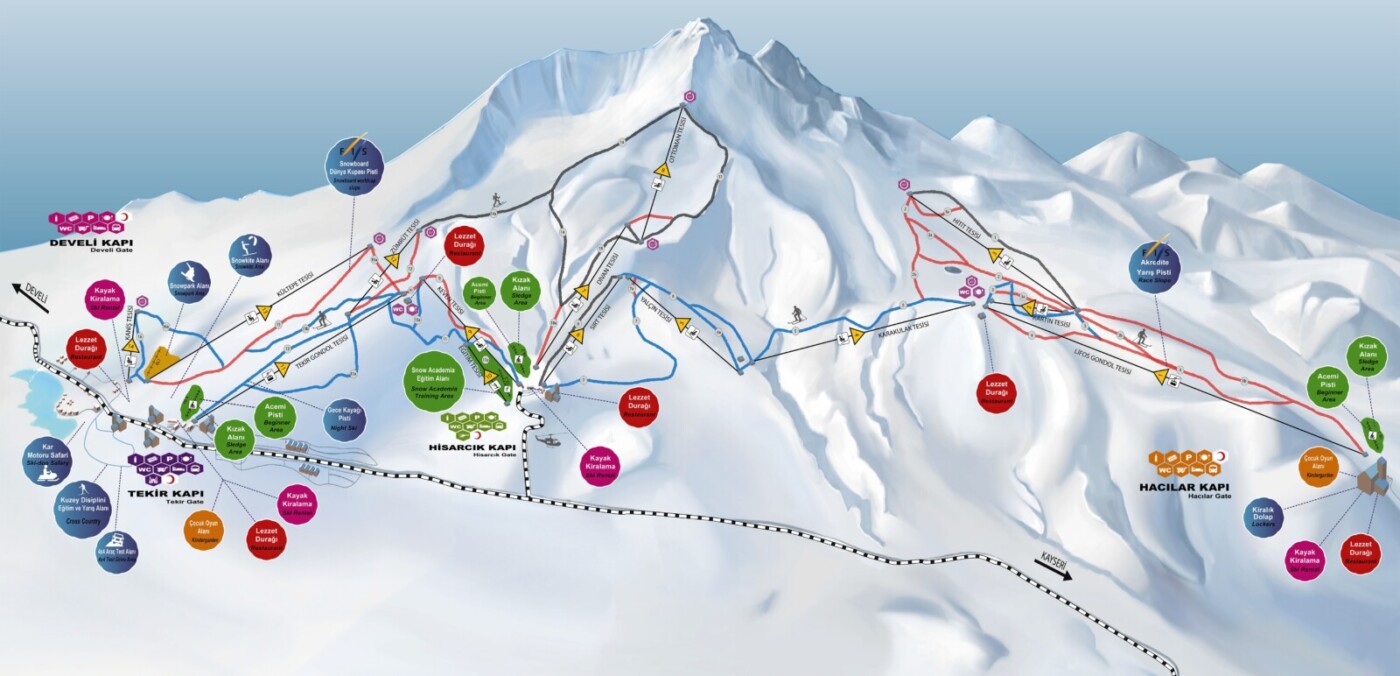 Гора Эрджиес 3917м — потухший вулкан и самая высокая гора Анатолии и всей центральной Турции. На склонах горы расположился одноименный курорт, всего в 25 км от городка Кайсери.