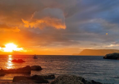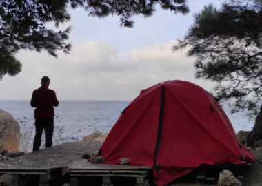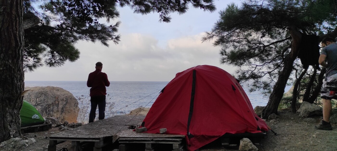 Отсюда нас заберет машина сопровождения и переедем к т/с Ласпи, которая находится в одноименной бухте. Здесь в сосновом лесу установим наш лагерь. Вечером готовимся, проходим инструктаж по прохождению Виаферраты.
