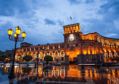 Рано утром вылет в Ереван. Прилет в столицу Армении к 9 утра. Трансфер в гостиницу. Заселяемся, идем гулять по городу. Готовимся к встрече нового Года!