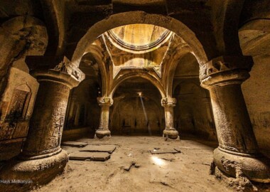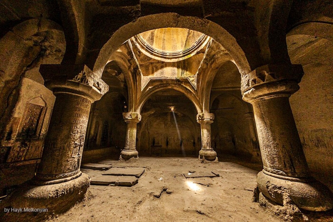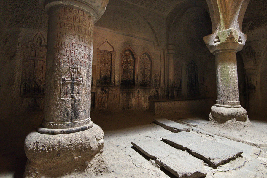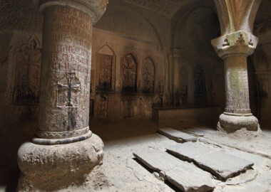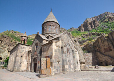 Недалеко от Гарни мы осмотрим пещерный монастырь 4века Гегард. Залы и этажи монастыря высечены из цельного куска базальтовой скалы. Поражает и природа, окружающая монастырь. Находится он в ущелье реки Азат и окружен лесами и скалами
