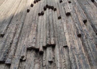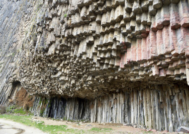 Спустимся вниз к реке Азат и увидим удивительно красивую природную достопримечательность. Этого место носит имя «Симфония камней» или «Базальтовый орган». Необычные скалы, расположенные на высоте примерно 50 метров над землей имеют вид каменных столбов, абсолютно правильного шестиугольного сечения. Тянущиеся ввысь каменные “трубы” напоминают огромный и величественный церковный орган. Ученые предполагают, что «Симфония камней» стала результатом обрушения ранее сформированных вулканических пород.