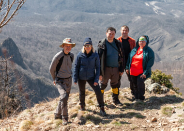 Отсюда поднимаемся к седловине хребта у гора Два Брата. Оставляем рюкзаки и идем на вершину горы, куда  ведет крутая тропа. Вершина – небольшой пяточек с обрывами во все стороны.