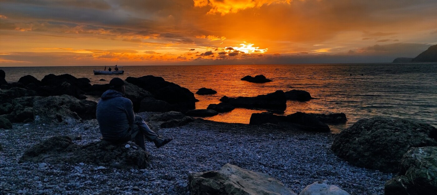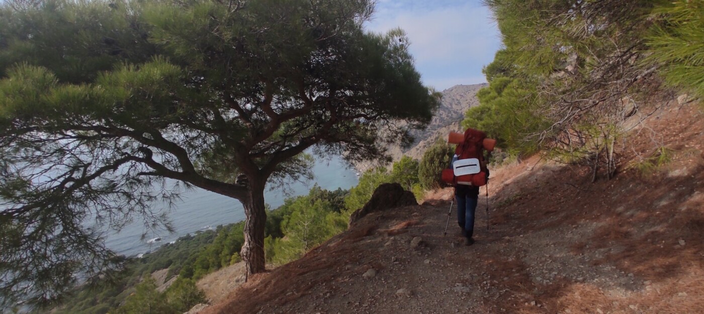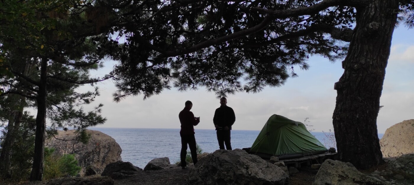 После прохождения виа-ферраты переезд в поселок Резервное. Проходим участок Большой Севастопольской тропы и спускаемся на ночевку к морю в районе кемпинга Инжир. Установка лагеря,  купание в море, любуемся закатом.
