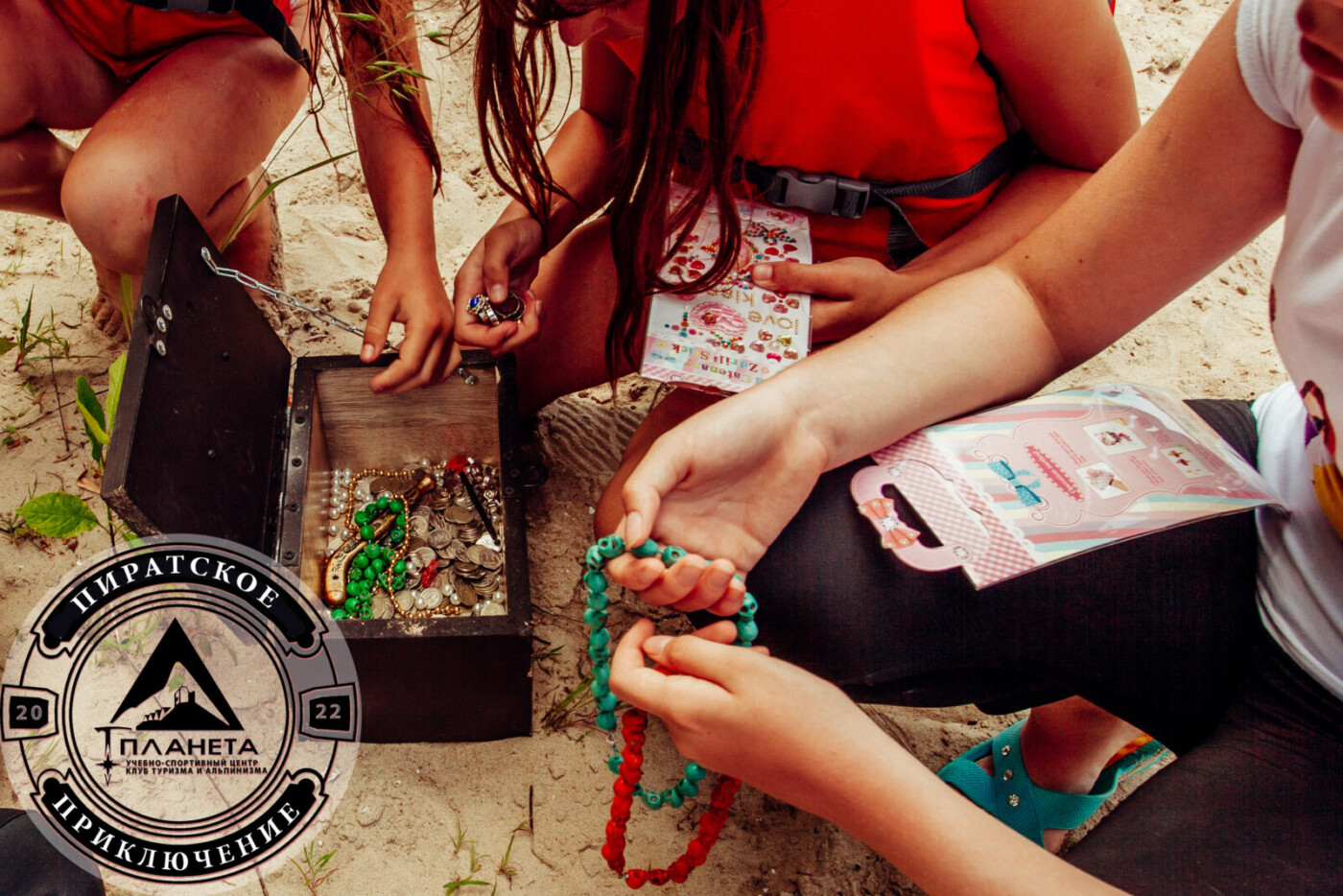 Откапываем сундук с сокровищами, делим поровну, возвращаемся в лагерь.