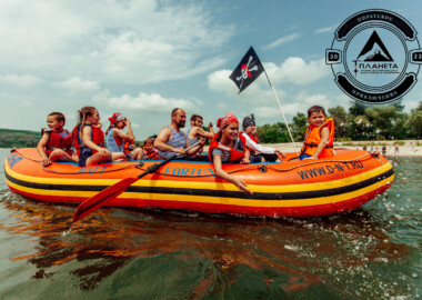 Лёгкий завтрак, после которого поднимаем пиратский флаг и начинаем путешествие. Сплав до места стоянки и установка там пиратского лагеря.