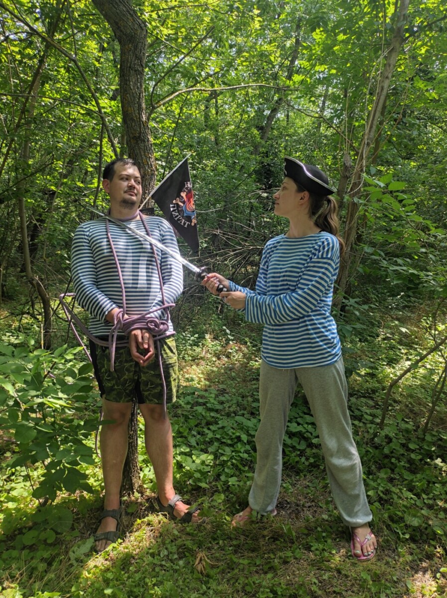 Утром заезд в ст. Раздорскую, переодевание в пиратов. Придумывание пиратских имен.