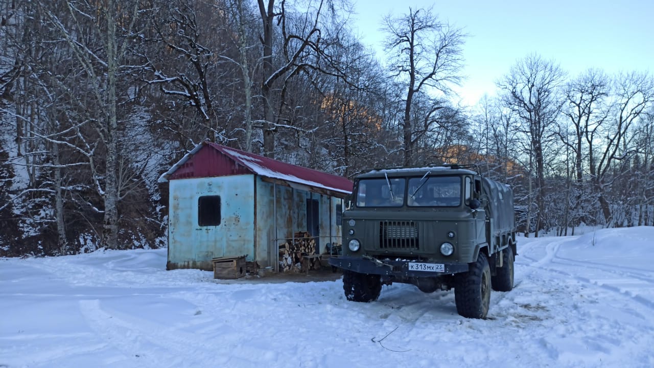 Заезд в поселок Узловой. В 7.00 – заброска на Газ66 по ущелью Тхач до Избушки.