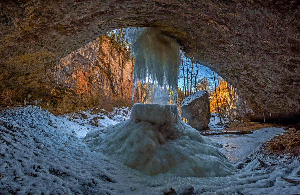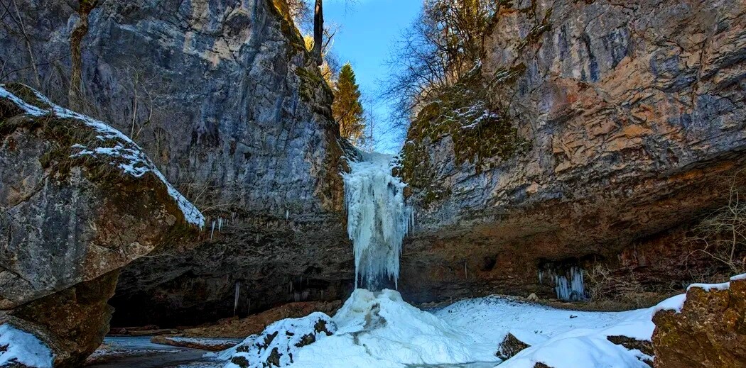 Утром совершим вылазку в каньон реки Мезмай. Зимой здесь есть что посмотреть. Замерзшие каскады водопада Университетский очень красивы.