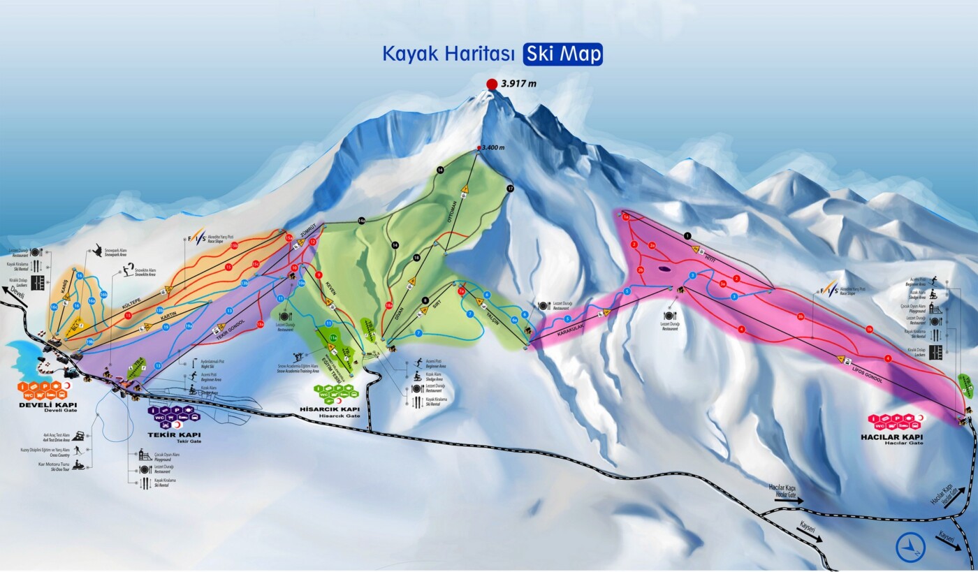 Гора Эрджиес 3917м — потухший вулкан и самая высокая гора Анатолии и всей центральной Турции. На склонах горы расположился одноименный курорт, всего в 25 км от городка Кайсери.