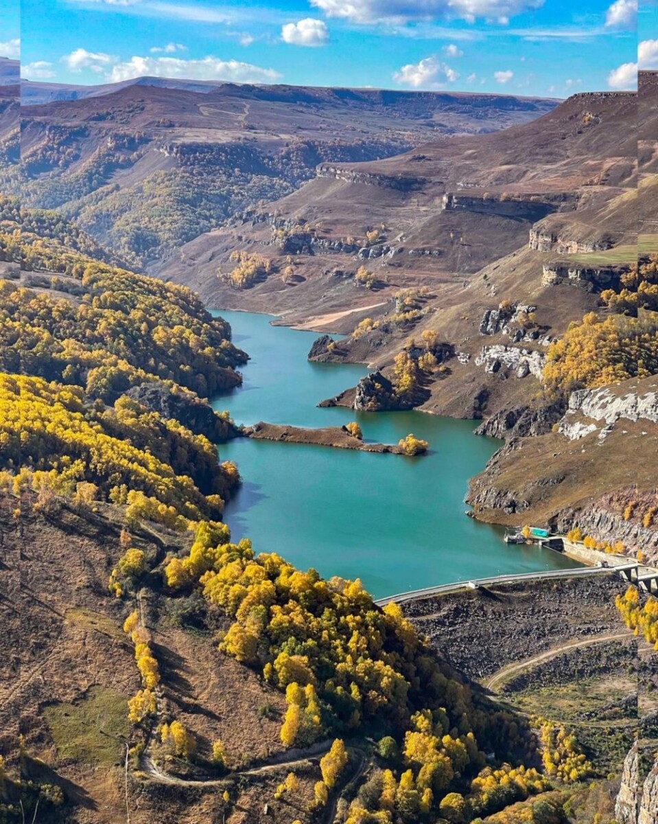 Сегодня мы продолжим спуск вниз по плато. На склонах берет начало свое река Эшкакон, которая питает красивое горное озеро- водохранилище. На спуске мы хотим полюбоваться видами на этот красивый рукотворный объект.