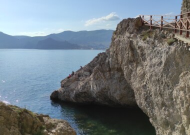 Сегодня отправимся в заповедное урочище на мыс Алчак, который замыкает Судакскую бухту. Красивейшее место с гротами и скалами. Обязательно подымимся в грот, с которого потрясающий вид на море.