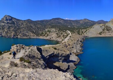 Сегодня отправимся в Новый Свет. Здесь нас ждет целый день приключений. По тропе мы выходим к можжевеловой роще, обходим по тропе Царский пляж, поднимаемся в долину Рая, попадаем на “таврскую лестницу” и с нее поднимемся на пик Космос. Красивая вершинка доминирует на окружающими скалами. Вид отсюда и правда – космос! Далее мы спустимся по тропе в долину Ада, отсюда идем на мыс Капчик. Здесь изюминка – сквозная пещера прямо внутри через весь мыс. Возвращаемся по тропе Голицына в Новый свет. Возвращаемся в Судак.