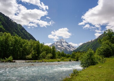 Архыз, горный район Карачаево-Черкесии, один из живописных мест на Западном Кавказе.