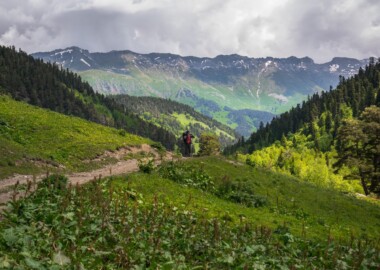 Из долины в снега через перевал и снова в зелёную долину! Отличный получился поход! Багдан молодец!
