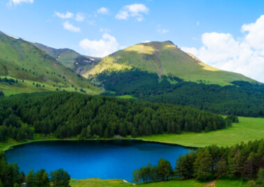 Это озеро притаилось в горах Карачаево-Черкесии в ущелье Худес. К нему ведет длинная джипповая дорога. Но и джипы сюда приезжают не часто. Наш же маршрут будет включать путь к озеру из поселка Хурзук и подъем на вершину Эль-баши.