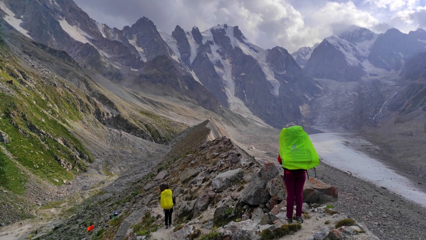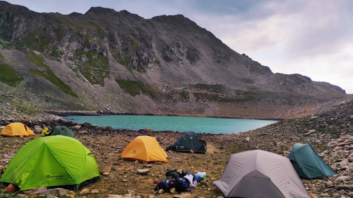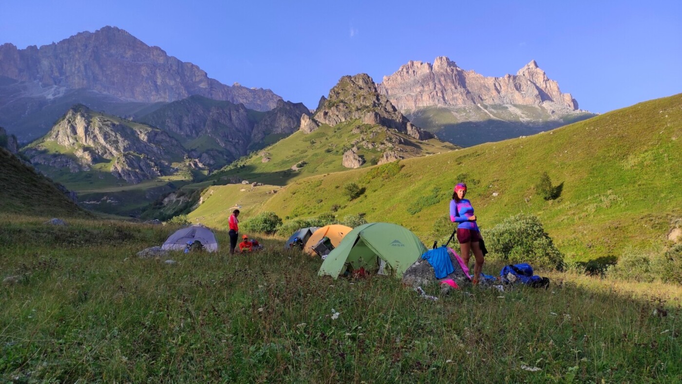 Преодолев все трудности мы спустимся в “карман” морены ледника Уллуауз. Заночуем уже ниже камней на живописных полянах.
