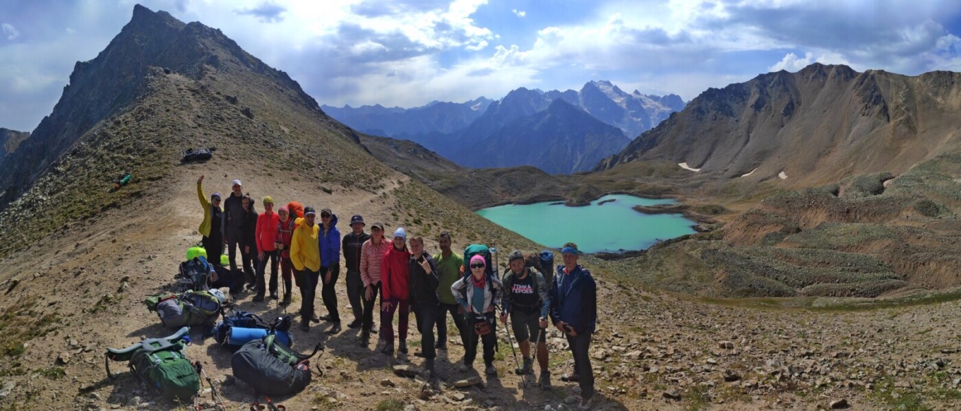 Утром, собрав лагерь мы поднимаемся на перевал Яков 3394м 1А. К нему ведет крутая осыпная тропа. С перевала захватывающий вид на озеро и вершины Суганского хребта.