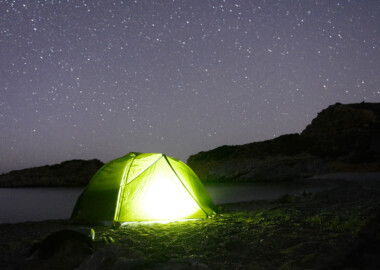 В кемпинге места под палатки, кухня, душ, возможность зарядить телефон.