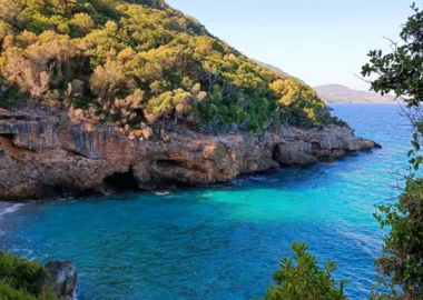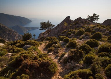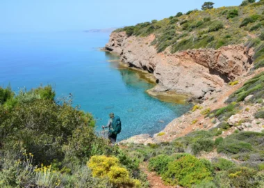 После завтрака и утреннего купания в море собираем палатки и продолжаем наш путь через заросли земляничного дерева и оливковые сады, останавливаясь в бухтах на купания и отдых, заглядывая в прибрежные пещеры и гроты. Устроим небольшой отдых в невероятно красивой скальной бухте, в которую мы спустимся по древней лестнице времен Карии.