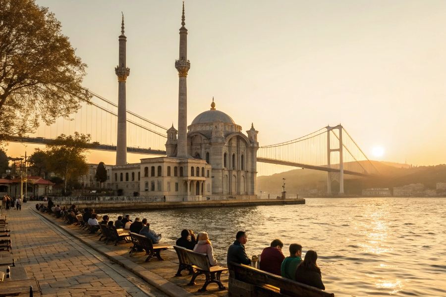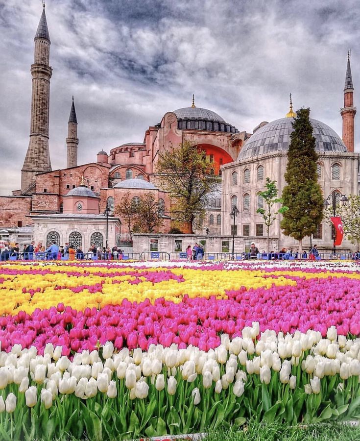 Маршрут “Короткий круг” (Kısa Boğaz Turu). Вечером возвращаемся на трамвайчике на площадь Султан Ахмет и идем любоваться закатом в парк Гюльхане. Тюльпаны и вид на Босфор в золотых лучах. Идеальный финал дня.