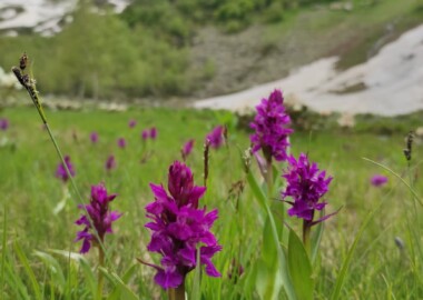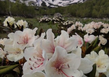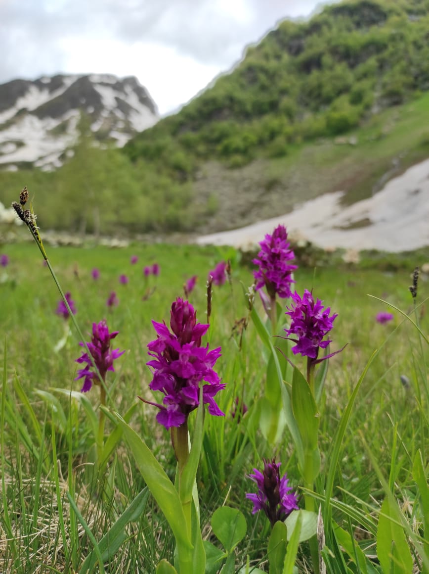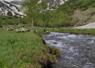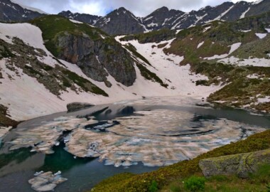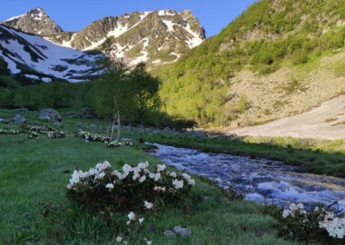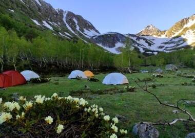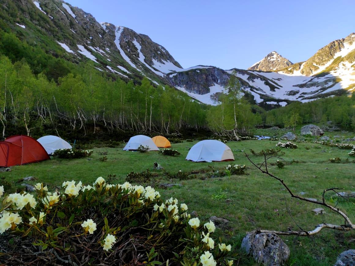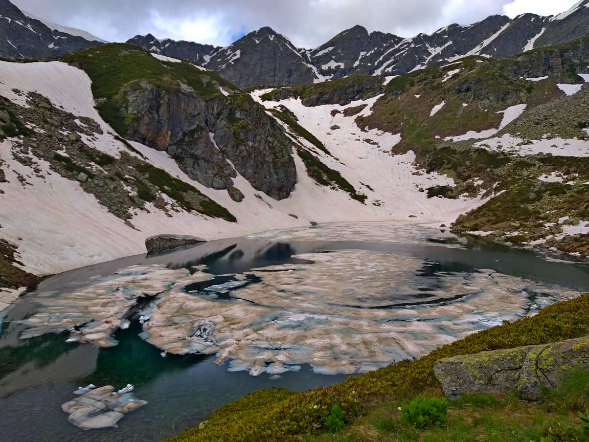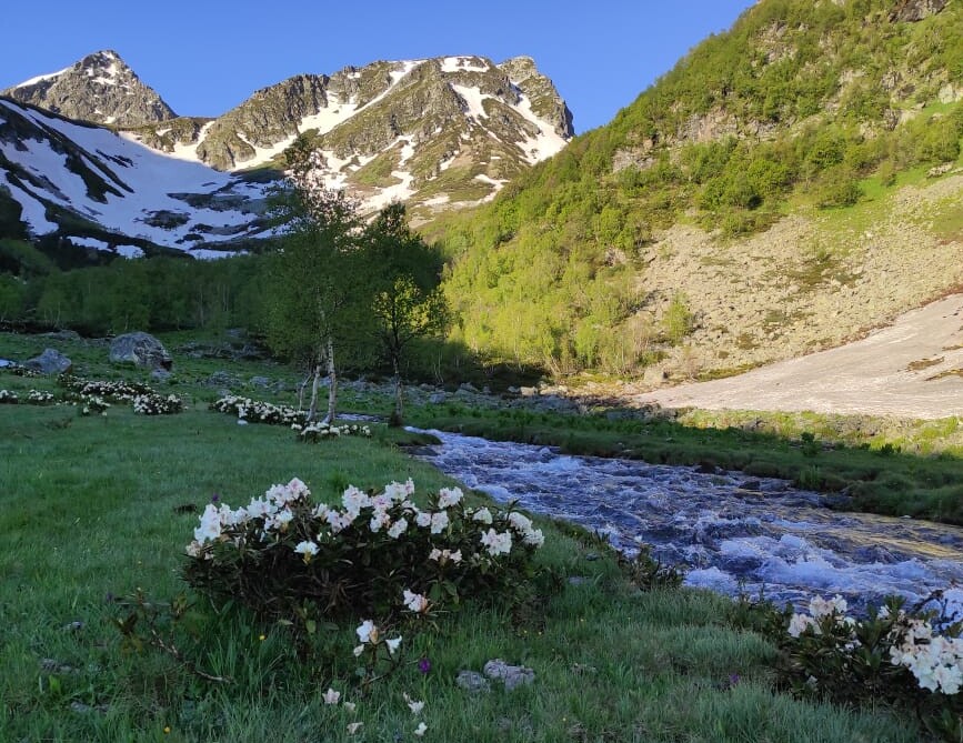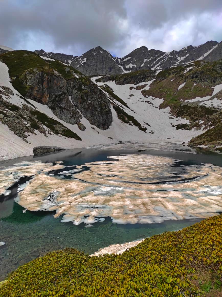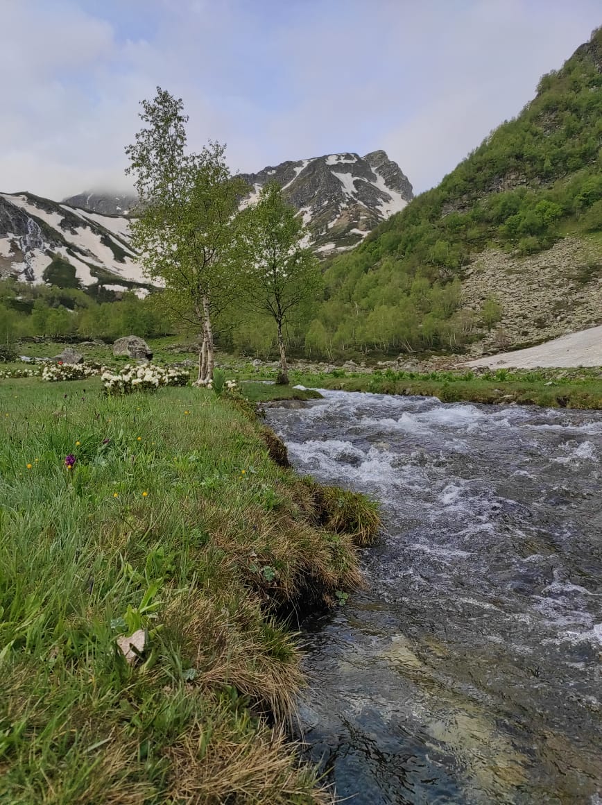 Маршрут несложный, подходит для новичков. Будет проходит по многочисленным озерам долины Малая Дукка. Их здесь несколько. В июне здесь еще будет снег, что делает озера необычными.