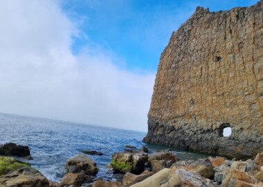 Завтракаем, и неспеша собираемся, выселяемся из гостиницы. Выезжаем с 10 утра посмотреть еще одну достопримечательность – скала Парус. Она находится возле поселка Прасковеевка. Где мы остановимся и отправимся пешком вдоль моря посмотреть это чудо природы.