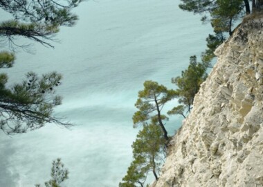 А по дороге домой заедем в Голубую бездну-это лагуна, расположившаяся между селом Дивноморское и поселком Джанхот, с изумительно чистой водой бирюзового цвета и крупной белой галькой на побережье. Романтичное название местность получила благодаря тому, что проплыв немного вглубь длинного плато, начинается резкий обрыв, глубина которого достигает 20м. Если смотреть на бирюзовую воду с отвесных скал, окружающих лагун, то кажется ,что отражающееся в море небо, утонула в нем.