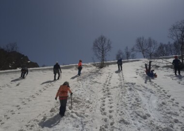 Снежные занятия – организация станций на снежном рельефе, организация страховки, проведение занятий по самостраховке на снежном склоне. Лавинный датчик, алгоритм поиска в лавине.