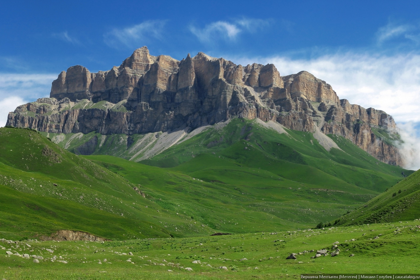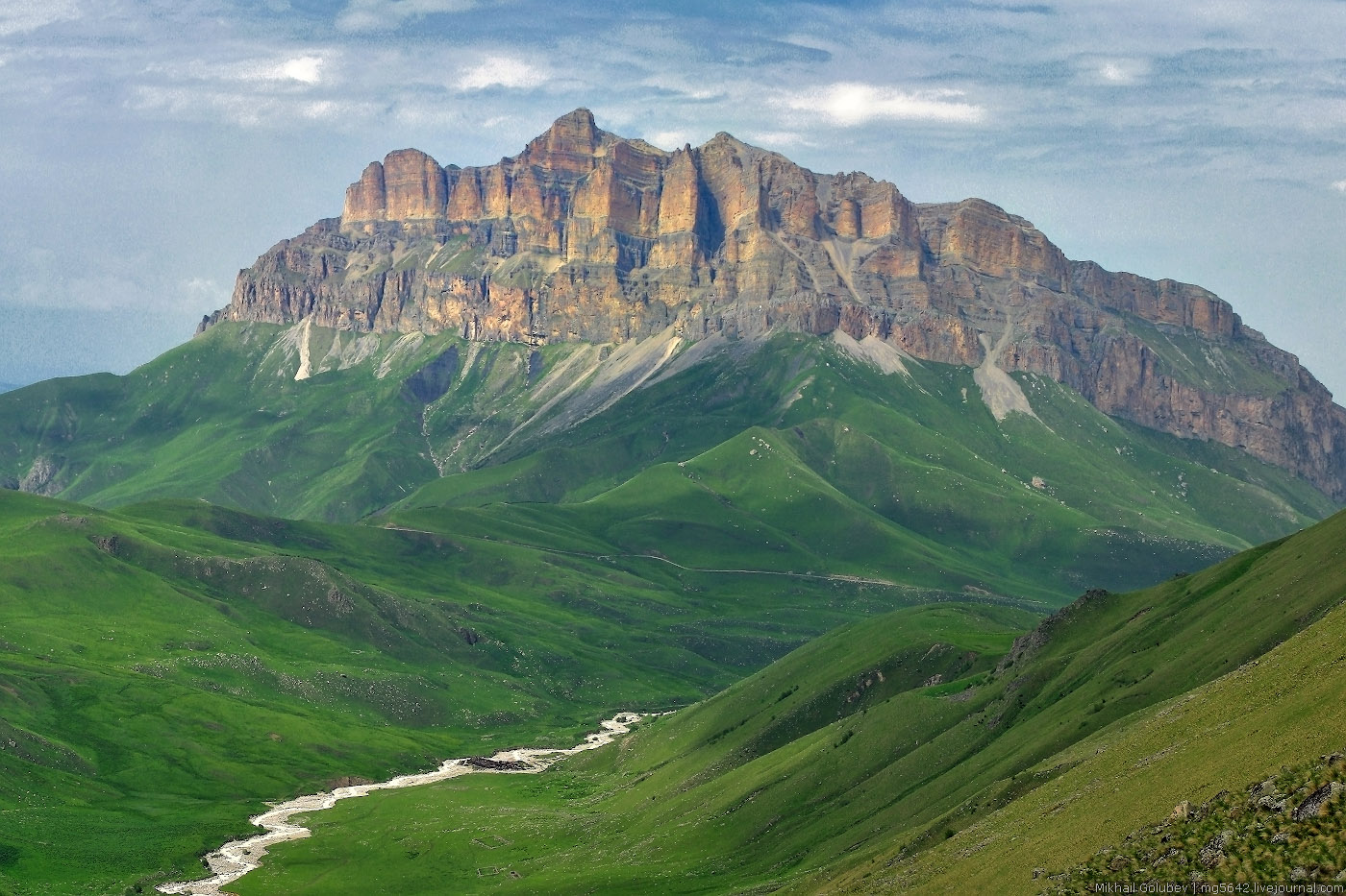 Заезд в поселок Верзняя Балкария к 7 утра. Завтракаем. Подъем идет по грунтовой дороге вверх по ущель.Курноят. Отсюда прекрасный вид в долину Черека Балкарского и на вершины противоположной стороны – Саухауз и Ликоран. На ночевку остановимся у истоков реки Курноят, ставим лагерь и отдыхаем. С видом на обрывы горы Мехтыген 3154м.