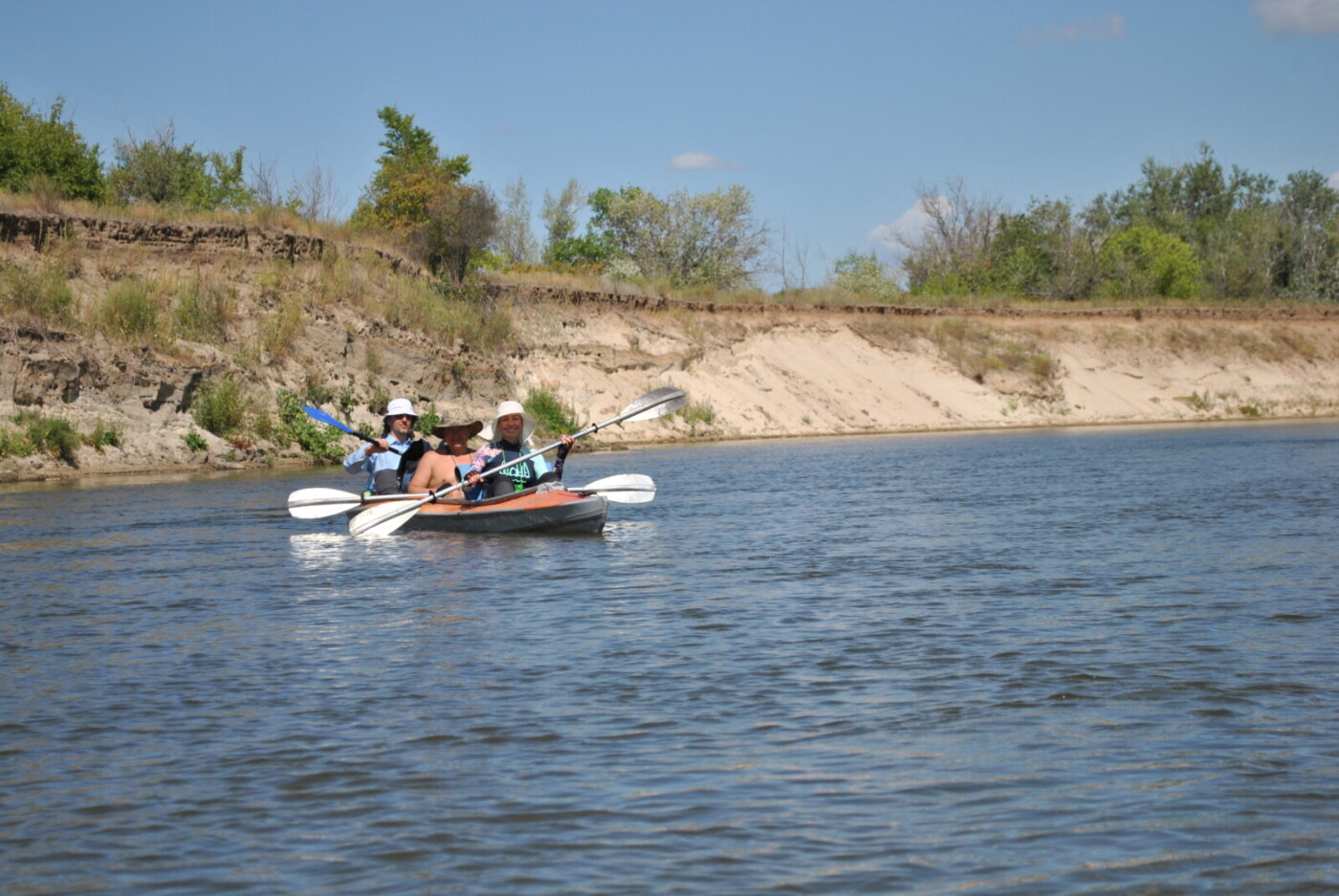 В августе воды в реке мало, множество перекатов и мелей, реку можно в любом месте перейти вброд. Несмотря на это, вода в Медведице чистая. Есть рыба. В августе на реке тепло и комфортно, даже, если Вы путешествуете с маленькими детьми.